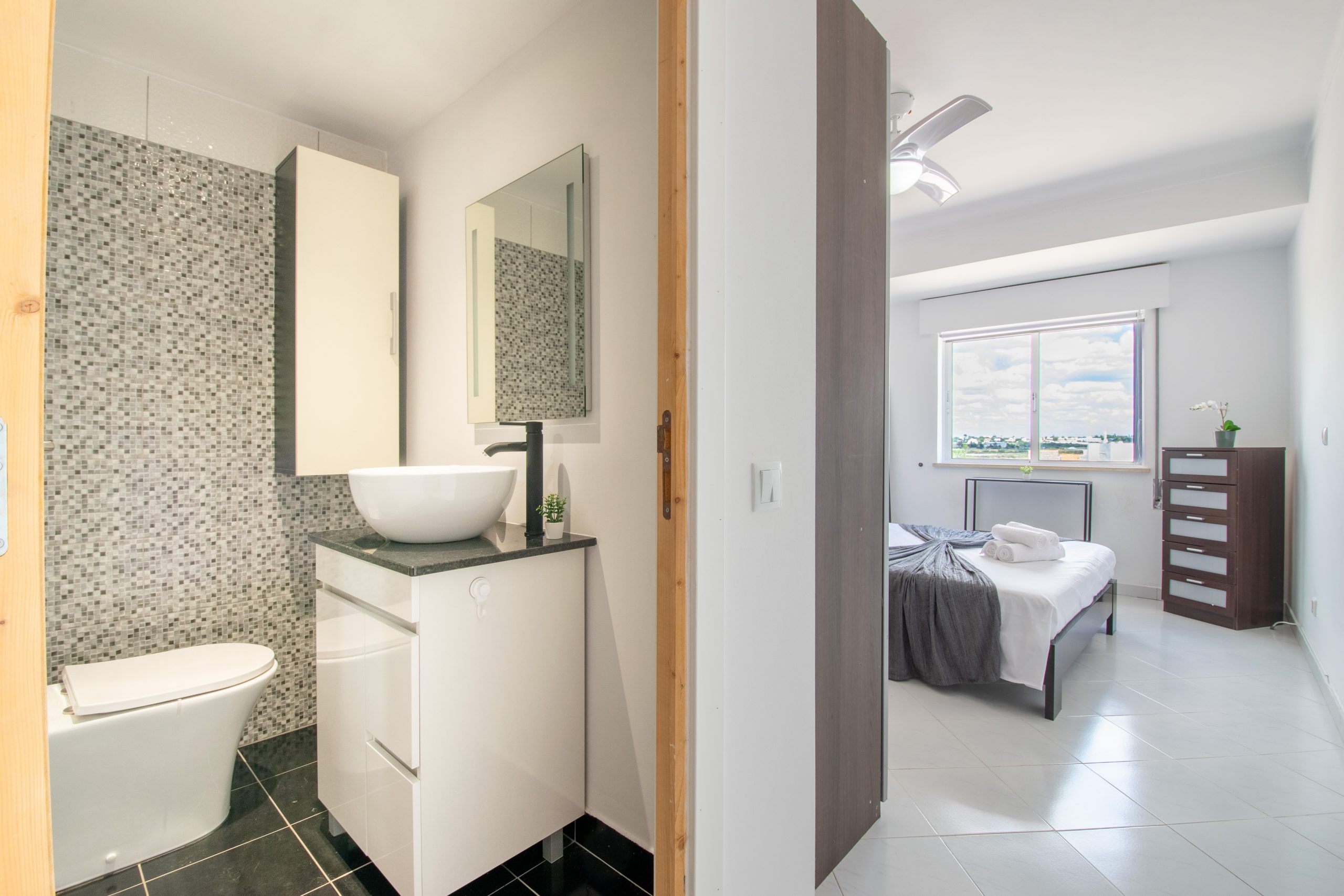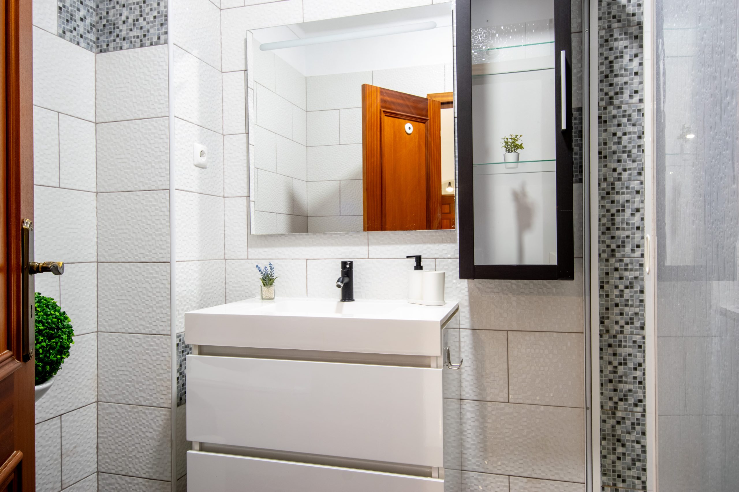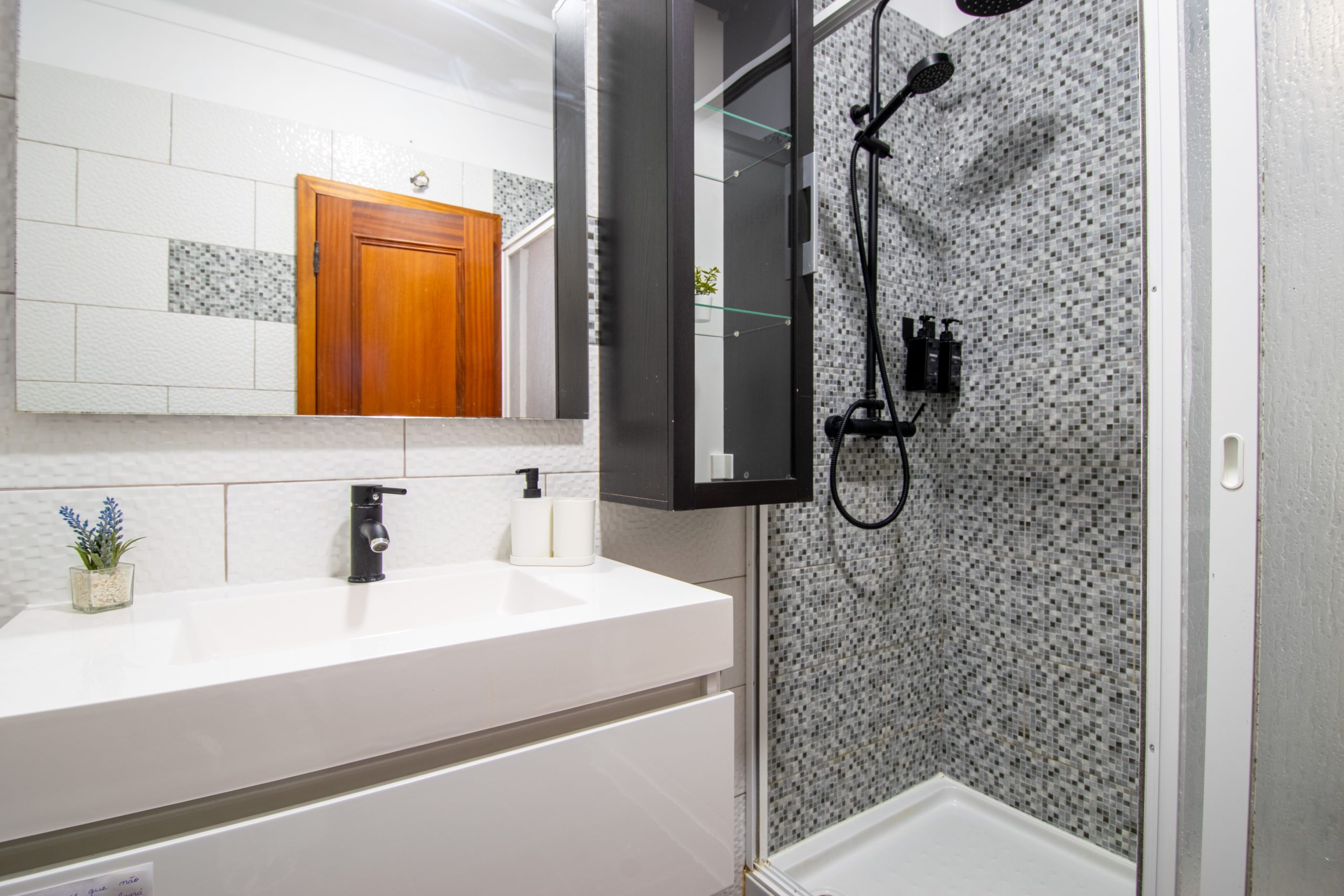 Situado no primeiro andar de um prédio sem elevador, o apartamento conta com dois quartos confortáveis, perfeitos para famílias, casais ou pequenos grupos. Dispõe de uma casa de banho completa dividida em duas zonas independentes, sendo uma delas privativa para o quarto principal, garantindo maior privacidade e comodidade.